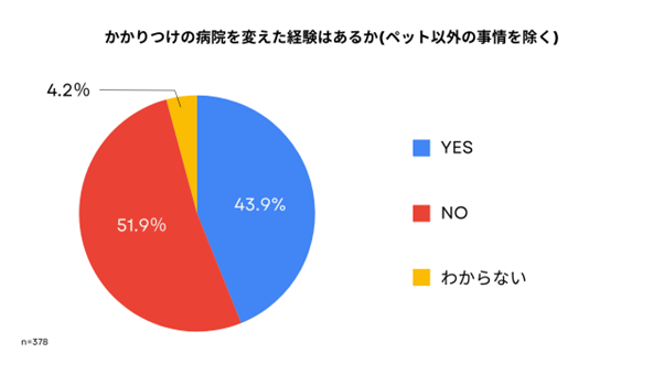 4割以上がかかりつけ動物病院を切り替えた経験──ペット飼育者378名の意識調査を公開~かかりつけ以外の動物病院利用は約半数。予約利便性や対応への不満も背景に~